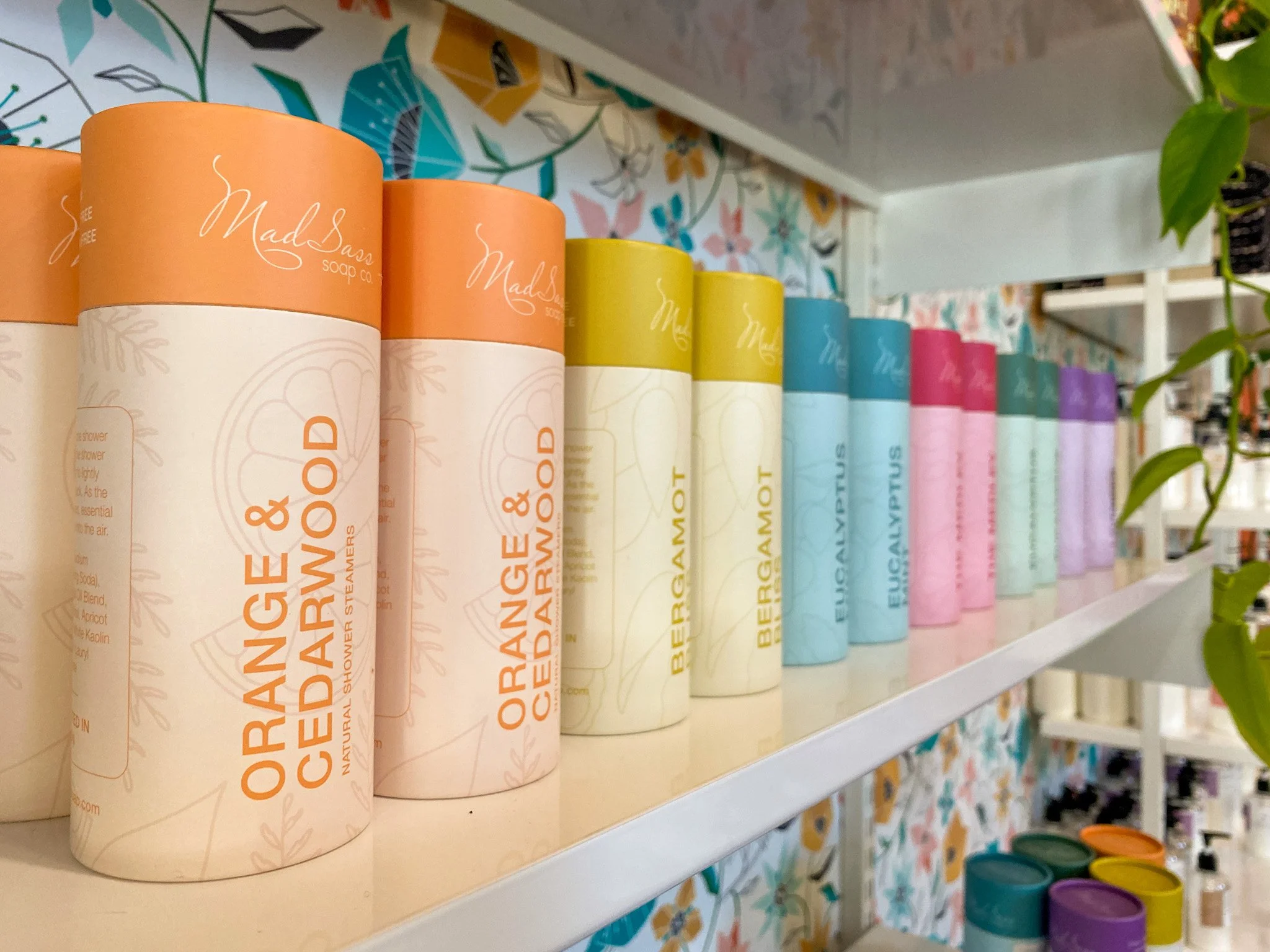This shower steamer packaging puts scent and luxury at the forefront of the design. Each custom shower steamer tube features scent-specific illustrations and clear typography to create a stand out product line that still aligns within the existing brand structure.